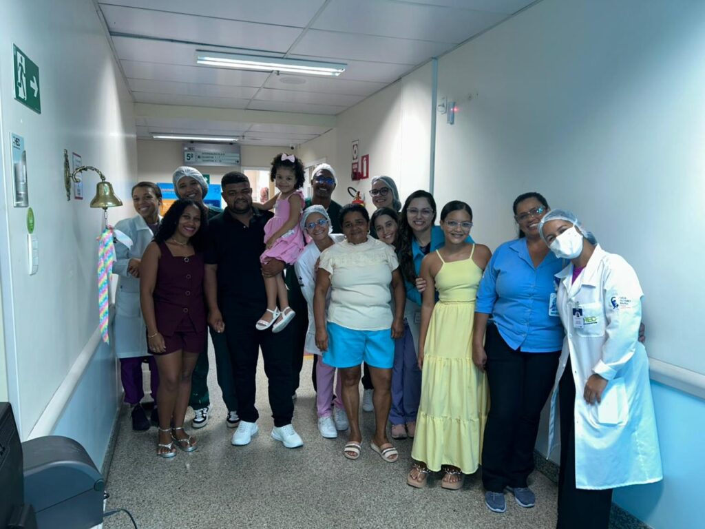 O toque do sino marca oficialmente o encerramento do protocolo oncológico na unidade. A adolescente foi acompanhada pela equipe da Oncologia do hospital, que presta atendimento especializado a crianças e adolescentes.