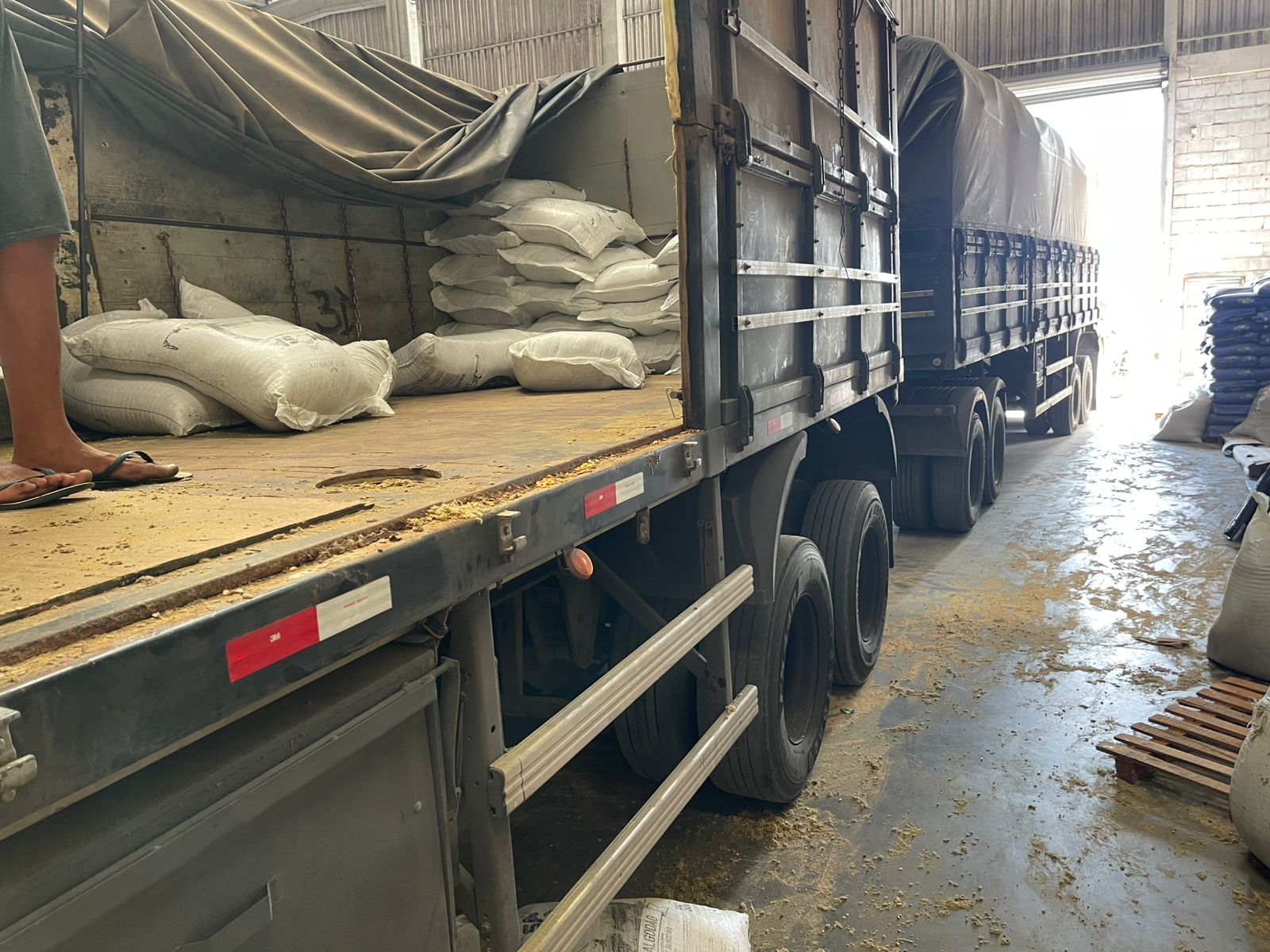 Segundo informações apuradas pelo Portal Raízes, parte da carga teria despencado enquanto o trabalhador realizava o serviço sobre os sacos de ração.