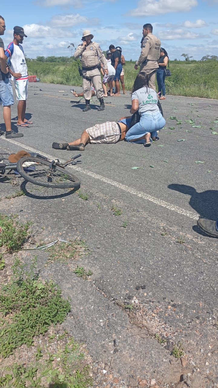 Colisão entre moto e bicicleta deixa dois feridos na BA-411, trecho Conceição do Coité ao distrito de Salgadália
