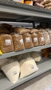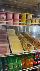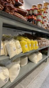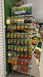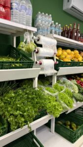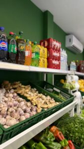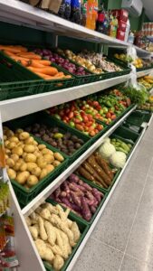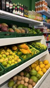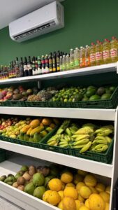 Além da variedade de carnes, o Frigorífico Almeida também disponibiliza frutas, verduras e um espaço destinado a produtos variados, permitindo que o cliente encontre diferentes itens em um só lugar.