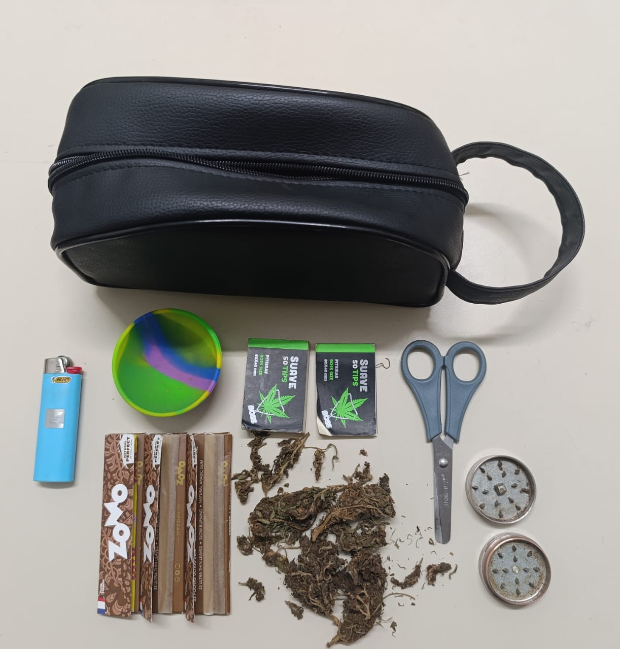 Durante a averiguação, os policiais constataram que o veículo estava aberto, com a chave na ignição. Após uma varredura no interior do caminhão, foi encontrada uma bolsa contendo 45 gramas de maconha.