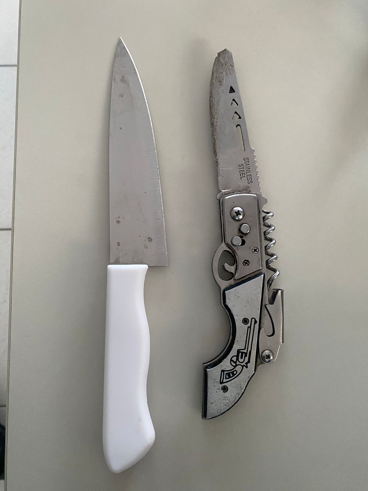 Ainda de acordo com a vítima, o suspeito descobriu onde ela estava abrigada e tentou entrar à força na residência. Durante a intervenção policial, o homem foi localizado e abordado, sendo apreendidos com ele uma faca e um canivete.