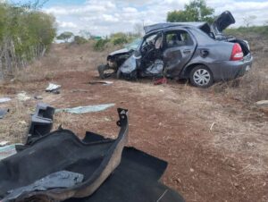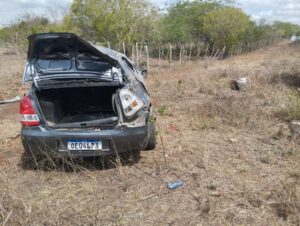 A equipe dos Anjos da Caatinga foi acionada para atender a ocorrência de um capotamento envolvendo um veículo Toyota Etios.