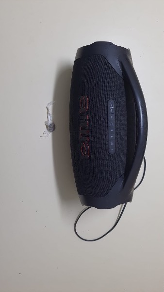 Foram apreendidos uma caixa de som e uma trouxinha de material análogo à maconha.