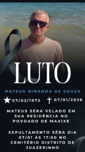 O velório será realizado no povoado do Maxixe e o sepultamento acontecerá às 17h00 no cemitério do distrito de Juazeirinho