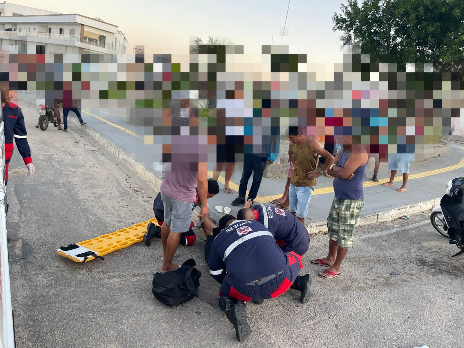 De acordo com o coordenador do Águia Resgate, Gildo Carneiro, a vítima foi encontrada ao solo, com os pés sobre a calçada, apresentando pequenas escoriações e queixando-se de dores no tornozelo esquerdo.