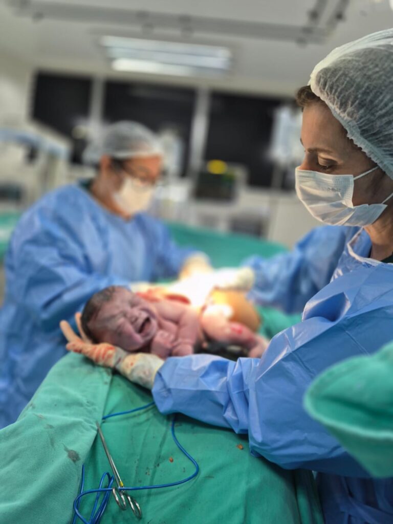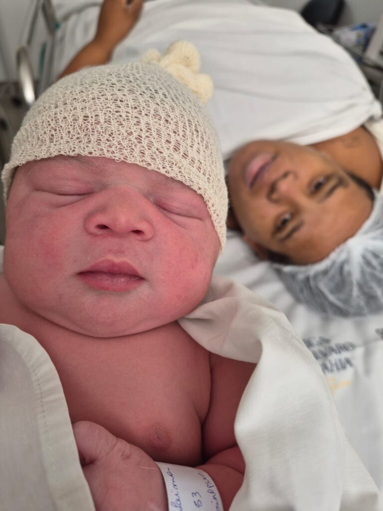 Isa Maria veio ao mundo por meio de parto cesariano, pesando 4,490 kg, e foi recebida com todo o cuidado, carinho e segurança pela equipe multiprofissional da maternidade do HEC. Mãe e filha passam bem e seguem sob acompanhamento da equipe de saúde da unidade.