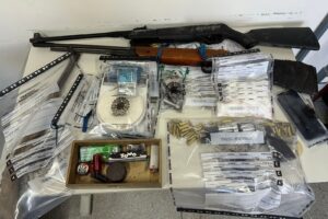 Durante as diligências, os policiais apreenderam quatro armas de fogo, sendo um revólver calibre .38 com 39 munições intactas, uma pistola Beretta calibre .635 com carregador e quatro munições, duas espingardas de fabricação artesanal — uma calibre .22 e outra de calibre ignorado — além de uma espingarda de pressão. Também foram encontrados 33 porções de cocaína, duas porções de maconha, duas balanças de precisão, uma máquina de cartão de crédito, R$ 577 em espécie, um destrinchador e dois aparelhos celulares.