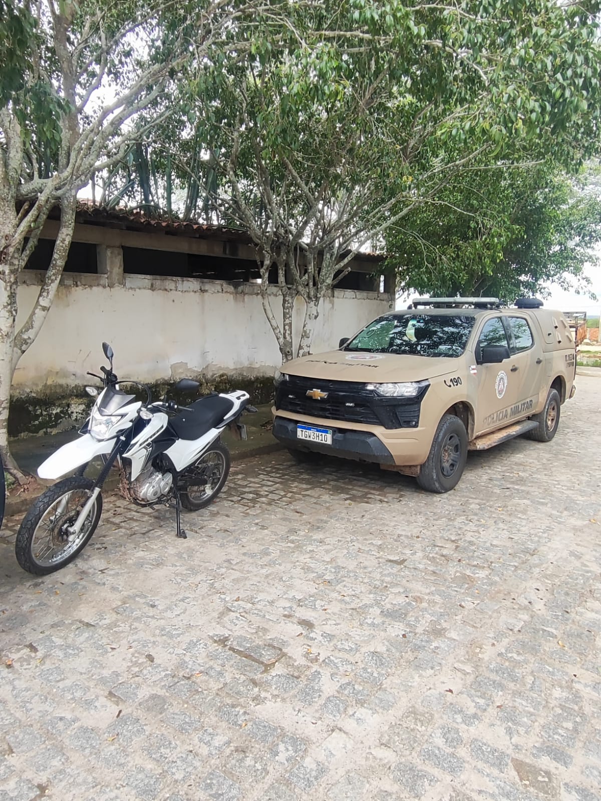 Três dias após o roubo, ações integradas entre as polícias Militar e Civil resultaram na localização do veículo, que foi encontrado abandonado em uma estrada vicinal no povoado de Sítio Novo. Segundo a PM, a motocicleta não apresentava danos aparentes.