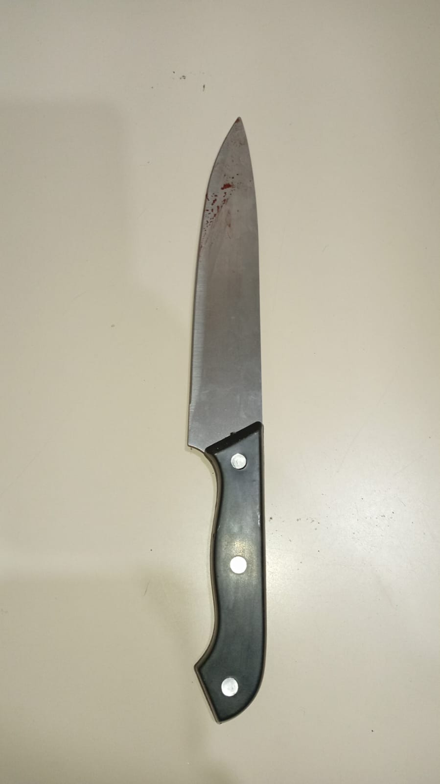A vítima, identificada pelas iniciais V., foi atingida por um golpe de faca no ombro, próximo ao pescoço.